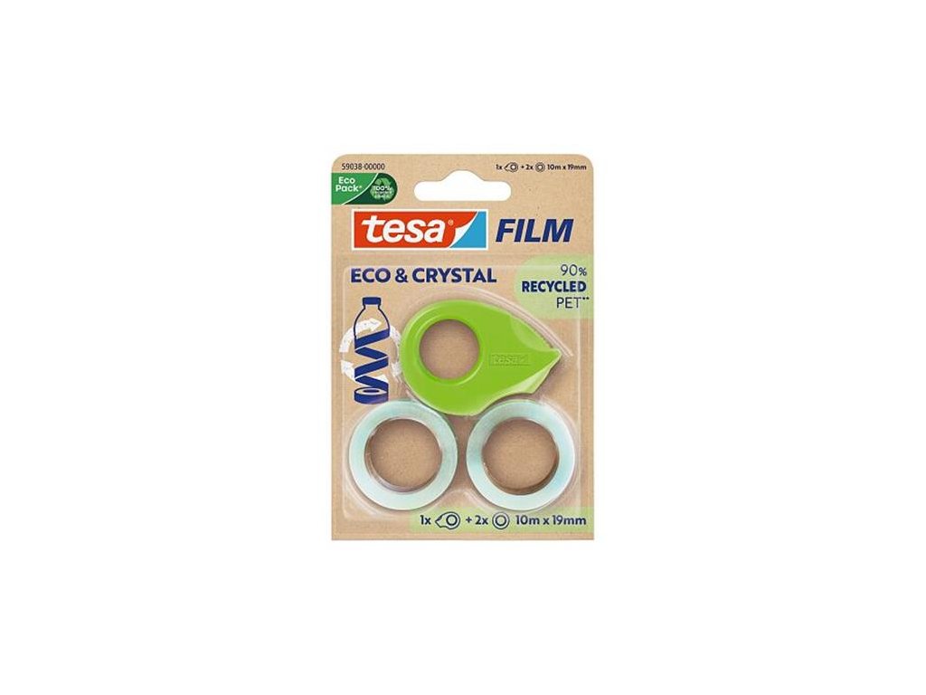 Lepiaca páska s dávkovačom, 2 ks 19 mm x 10 m, TESA "Eco&Crystal", priehľadná