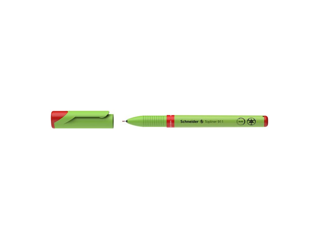 Liner, 0,4 mm, vymeniteľná náplň, recyklované telo, SCHNEIDER "Topliner 911", červená