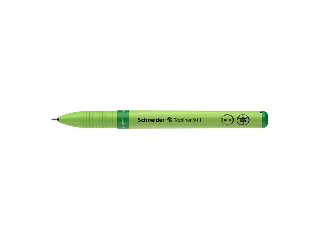 Liner, 0,4 mm, vymeniteľná náplň, recyklované telo, SCHNEIDER "Topliner 911", zelená