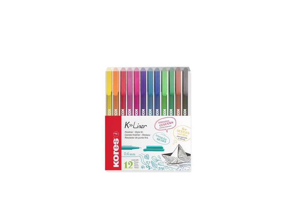 Liner, sada, 0,4 mm, KORES "K-Liner", 12 rôznych farieb
