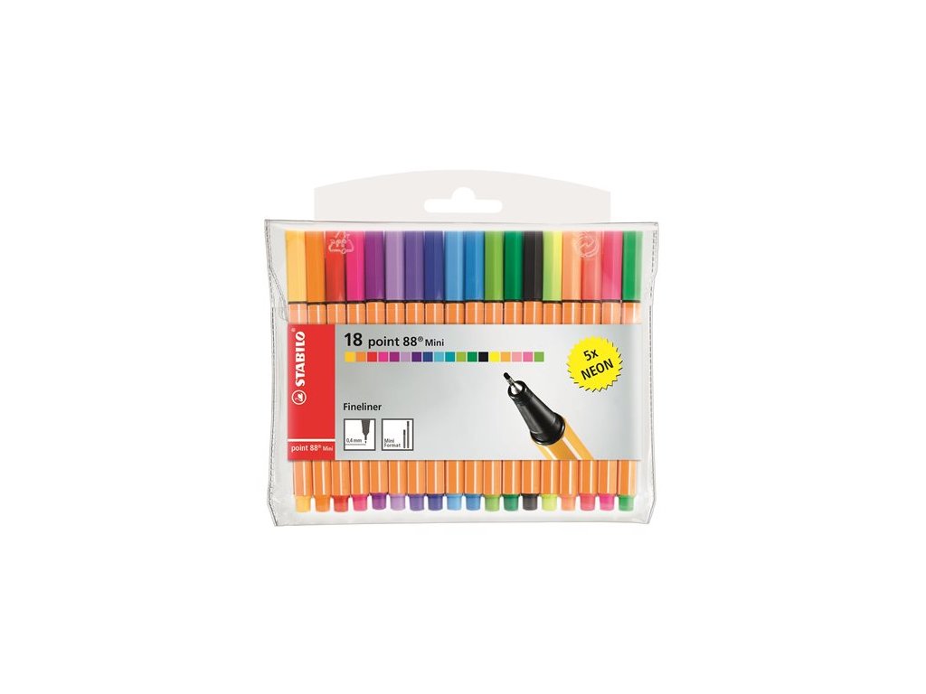Liner, sada, 0,4 mm, STABILO "Point 88 Mini Neon", 18 rôznych farieb