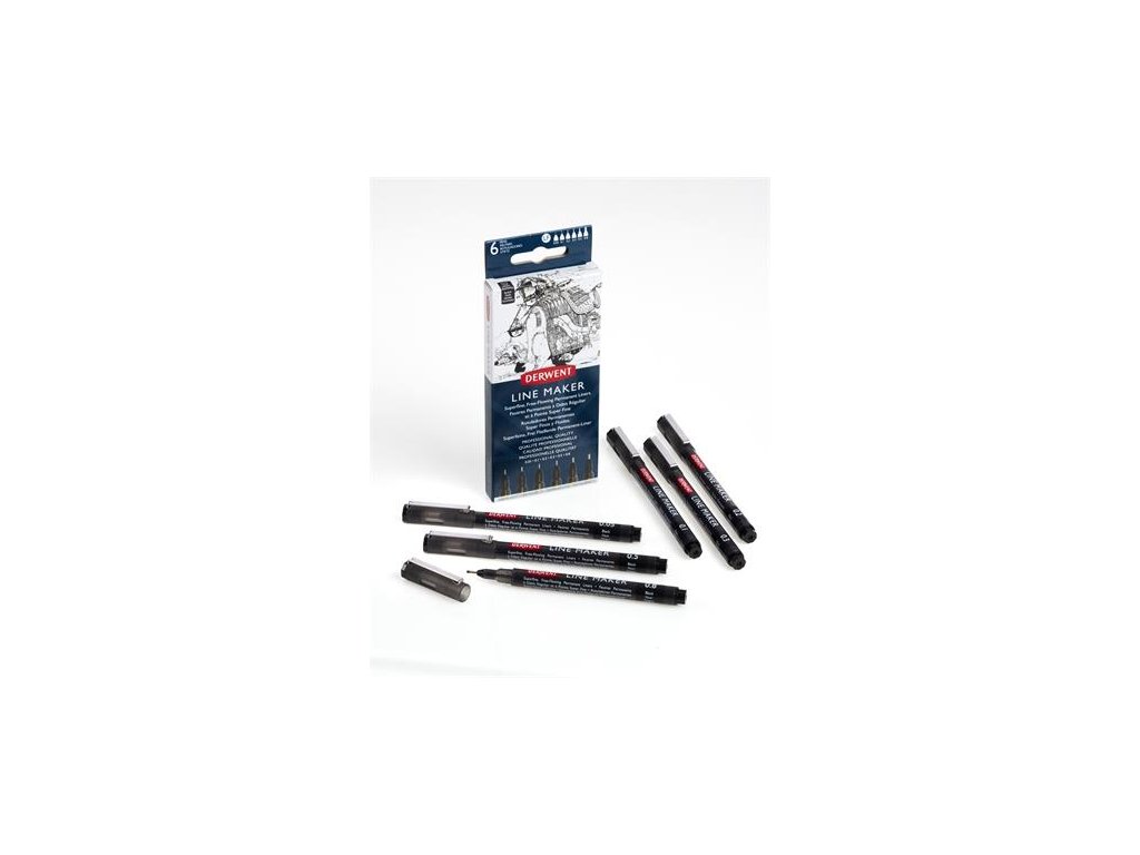 Liner, sada, 0,05/0,1/0,2/ 0,3/0,5/0,8 mm, DERWENT "Line Marker", čierny