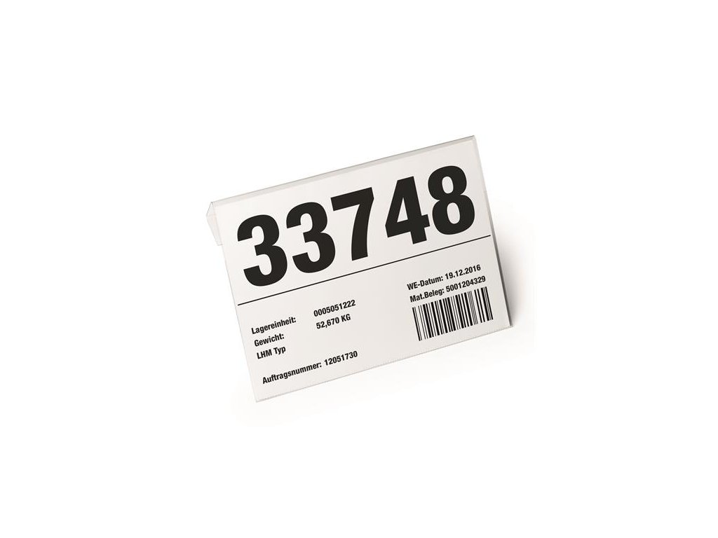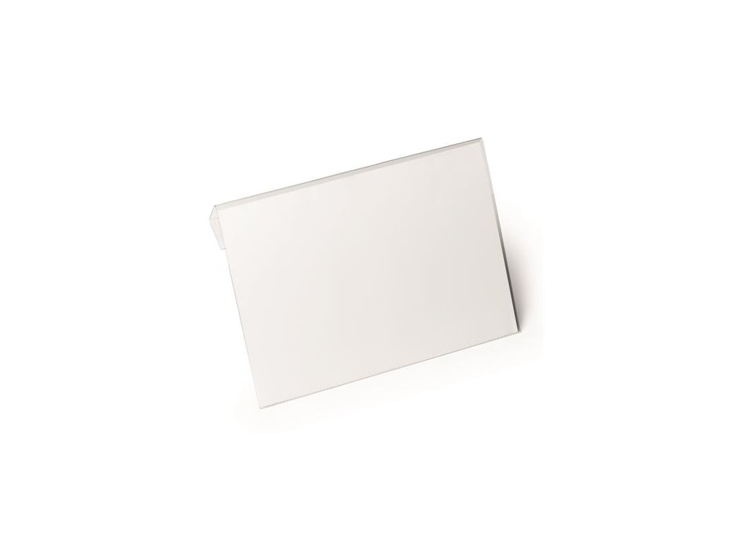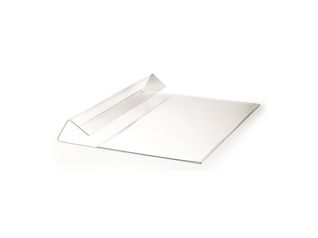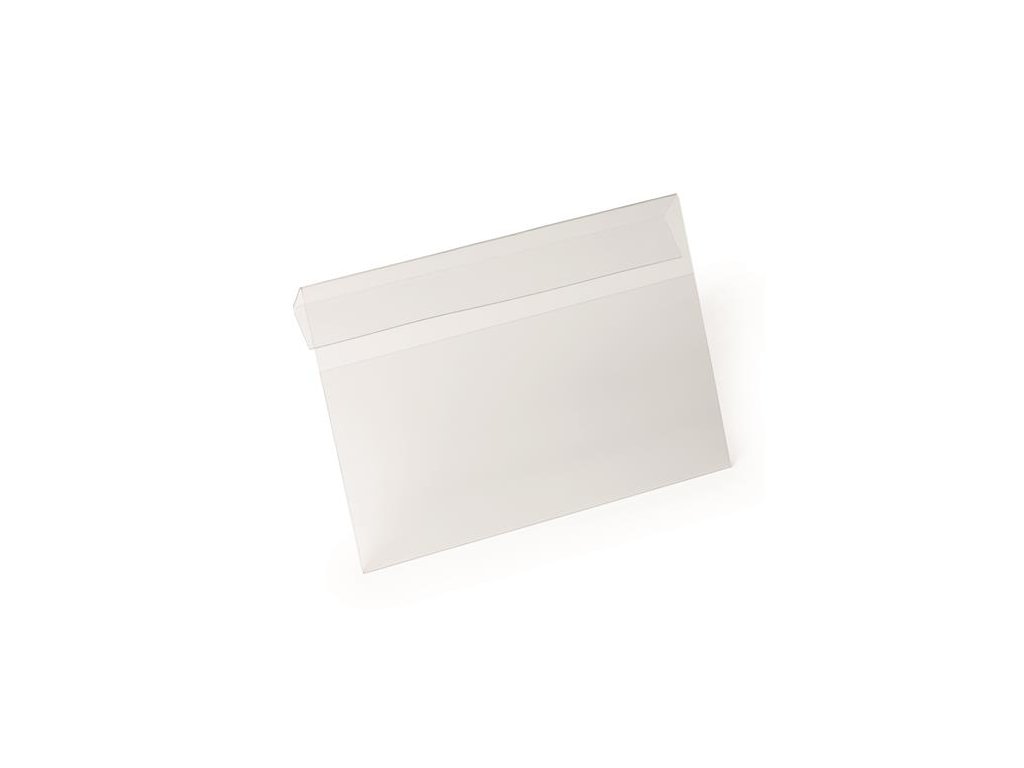 -priehľadné puzdro na dokumenty z tvrdenej PET fólie s ohybom, vhodné na zavesenie nad kartónové škatule, boxy alebo iné skladovacie nádoby