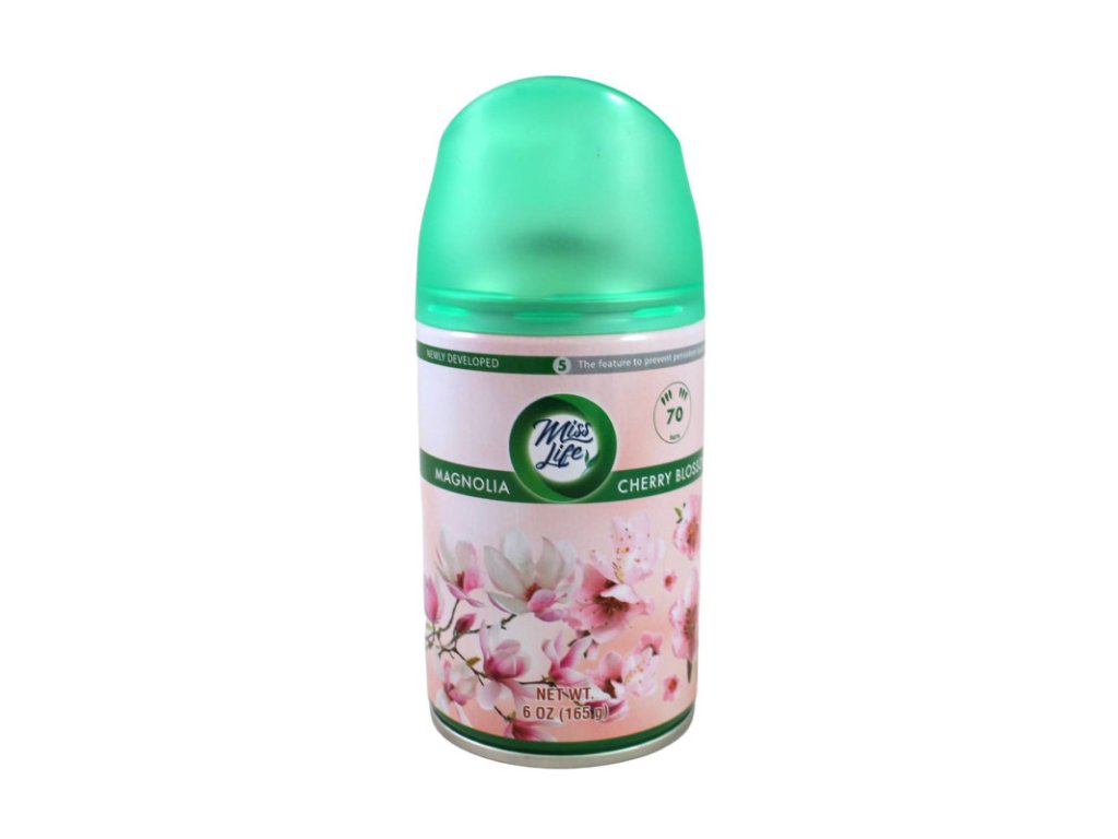 Miss Life náhrada do osviežovača 250ml Magnolia & Cherry Blossom Osviežovač vzduchu určený do automatických dávkovačov Kompatibilný s automatickými dávkovačmi : - TORK a AIR WICK Možnosť použitia aj samostatne bez dávkovača Založený na suchej technológii (nevytvára „mokrú hmlu“). Vytvára príjemnú atmosféru Bežná výdrž náplne 70 dní Objem: 250 ml Vôňa: Magnolia & Cherry Blossom / Magnólia a čerešňový kvet Vôňa magnólie a čerešňového kvetu je osviežujúca kvetinová kombinácia, ktorá vytvára upokojujúcu a radostnú atmosféru. Vo Vašom interiéri vykúzli atmosféru pohody. Cena za 1 ks/250mlDodatočné parametre