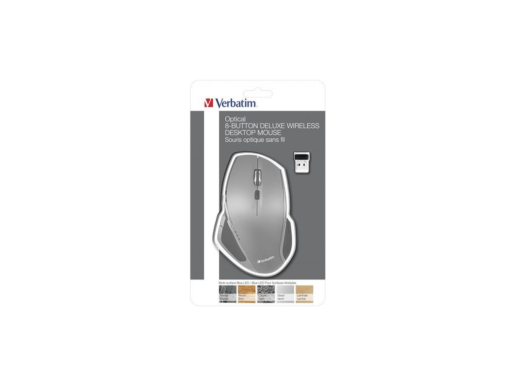 Myš, bezdrôtová, laserová, štandardná veľkosť, modré LED, VERBATIM "DELUXE", sivý