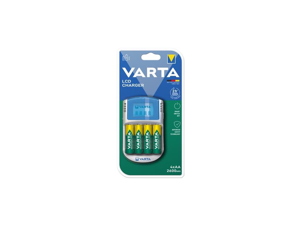 Nabíjačka batérií, AA tužkové batérie/AAA mikrotužkové batérie, 4x2600 mAh AA, displej, 12V USB, VARTA