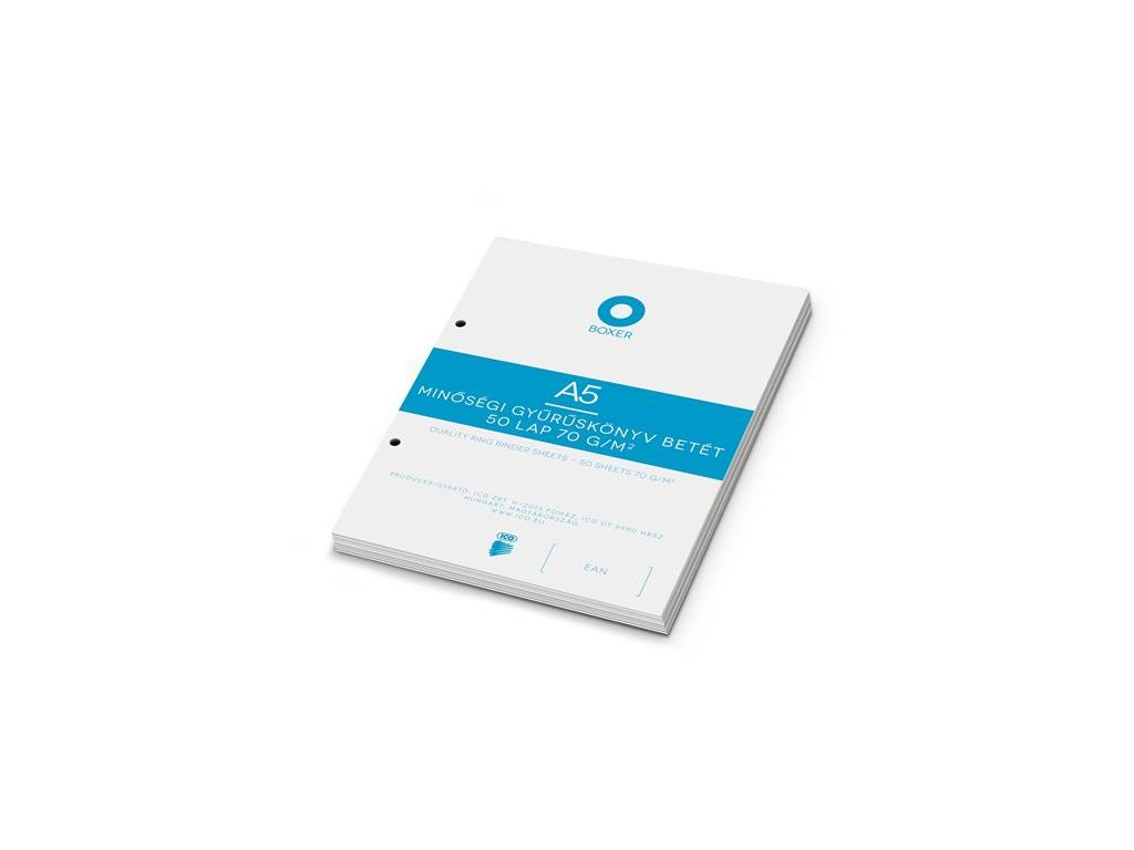 Náhradné listy do krúžkových šanónov, A5, štvorčekové, 50 listov, BOXER, biele