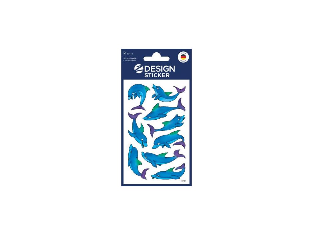 Nálepky, papier, 2 hárky, 76x120 mm, 76x120 mm, AVERY ZWECKFORM, "Z-Design No.53444", trblietavé delfíny