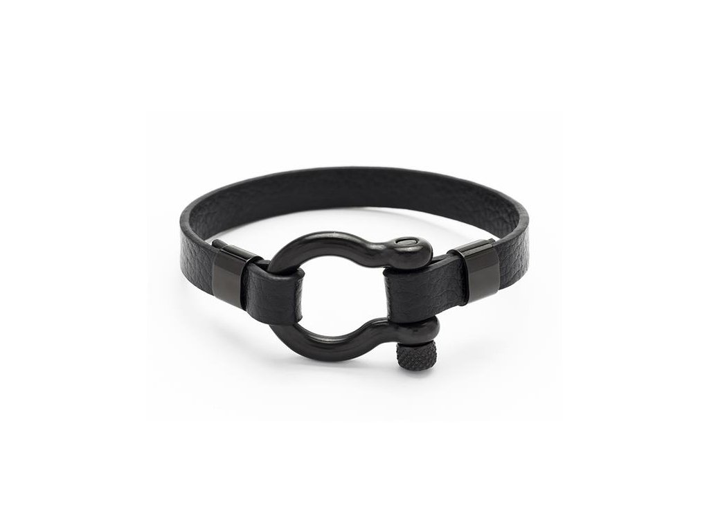 Elegantný kožený náramok. Z čiernej kože, čierne zámky. Bežná mužská veľkosť, hrúbka cca 6 mm Balenie v darčekovej taštičkeDodatočné parametre