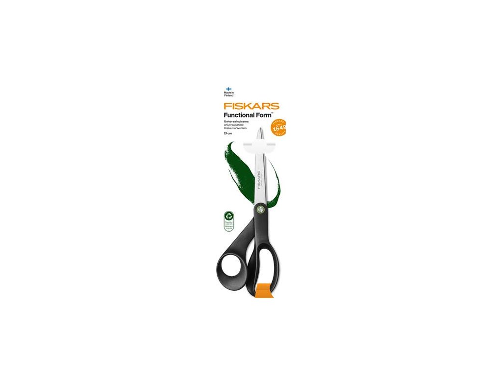 - Univerzálne nožnice Fiskars Functional Form ReNew sú vyrobené z recyklovaných materiálov (minimálne 70 %) a poskytujú maximálny komfort a strihací výkon