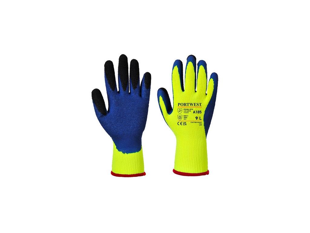Ochranné rukavice, latex, veľkosť: XL "Duo-Therm", žlté-modré