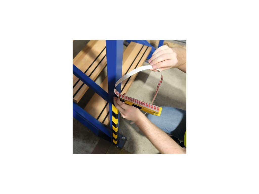 Samolepiaci flexibilný rohový ochranný profil z polyuretánovej peny - pre vnútorné použitie - poskytuje ideálne riešenie vo výrobných priestoroch, dopravných oddeleniach a skladoch, pivniciach, schodiskách, garážach, stenách, trámoch, regáloch a skriniach, ako aj strojoch, skladoch vozíky atď. -označuje nebezpečné miesta, chráni povrchy, steny a zmierňuje poškodenia spôsobené nárazom -profily je možné skrátiť na požadovanú dĺžku ostrým nožom -na výrobku používame farby podľa ASR A1.3, ktoré zodpovedajú RAL 1004/9003 farby (marker žltý/ marker čierny) - trieda E požiarna odolnosť podľa normy DIN EN 13501-1 - tepelná odolnosť od -30°C do + 70°C - dĺžka profilu 1 m - lepiaca plocha: 19 mm na oboch stranáchDodatočné parametre
