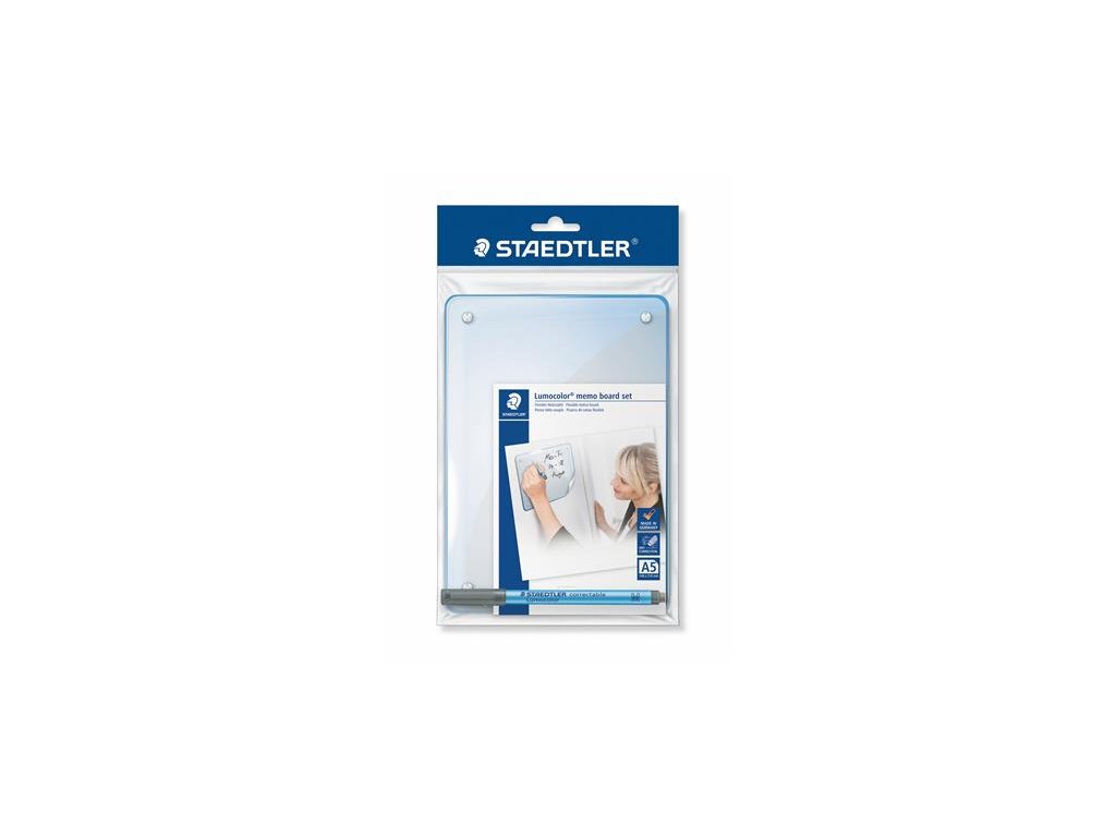 - opakovane použiteľná oznamovacia tabuľa - samolepiaca - odstrániteľná - za sucha zotierateľná - rozmer: A5 (210x148 mm) - sada obsahuje: 1 tabuľa Lumocolor, 1 ks Lumocolor 305 M popisovač, lišta na písacie potreby Značka: STAEDTLER Výrobca: STAEDTLER SE Adresa: Moosäckerstr. 3 , 90427 Nuremberg, Germany Web: http://www.staedtler.com Email: https://www.staedtler.com/intl/en/service/contact/Dodatočné parametre