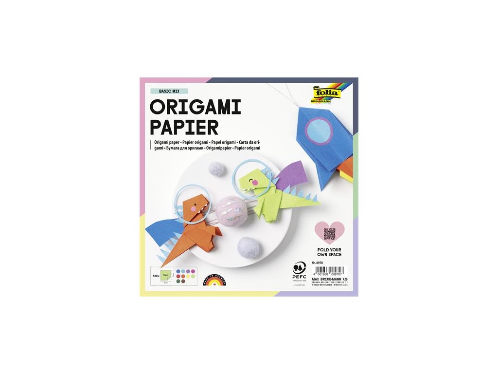 Origami papier, 20x20 cm, 70 g, 500 listov, FOLIA, rôzne farby