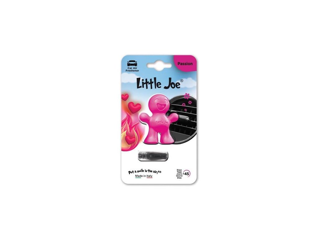 Little Joe je veselá 3D figúrka s prirodzenou a jemnou vôňou.Vôňa Passion je podmanivá a zvodná aróma, ktorá vyvoláva intenzívnu túžbu a vzrušenie. Kombináciou teplých a korenistých tónov vytvára zmyselnú a vášnivú auru, ktorá zanecháva trvalý dojem. Vôňa spája bohaté korenie, zvodné kvetinové tóny a jemný nádych pižma, čím vzniká aróma, ktorá je zároveň sofistikovaná a neodolateľná. Passion je ideálna pre všetkých, ktorí milujú odvážne a nezabudnuteľné vône.vydrží voňať až 45 dní -jednoduchá inštalácia: pripevňuje sa na mriežku ventilácie