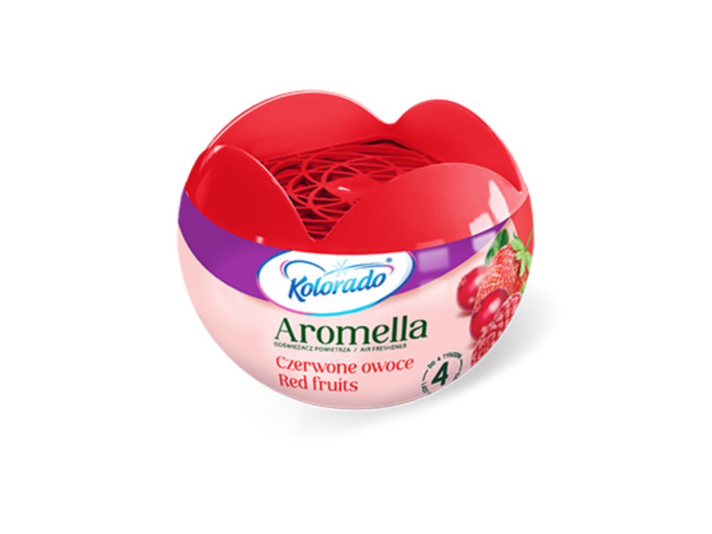 Osviežovač vzduchu Kolorado Aromella ČERVENÉ PLODY 150g • exkluzívne, jedinečné vône • osviežovač vzduchu v géli • dizajnový tvar • menšia odparovacia plocha vďaka elegantnej otváracej mriežke • vôňa až 4 týždne Hmotnosť: 150 gDodatočné parametre