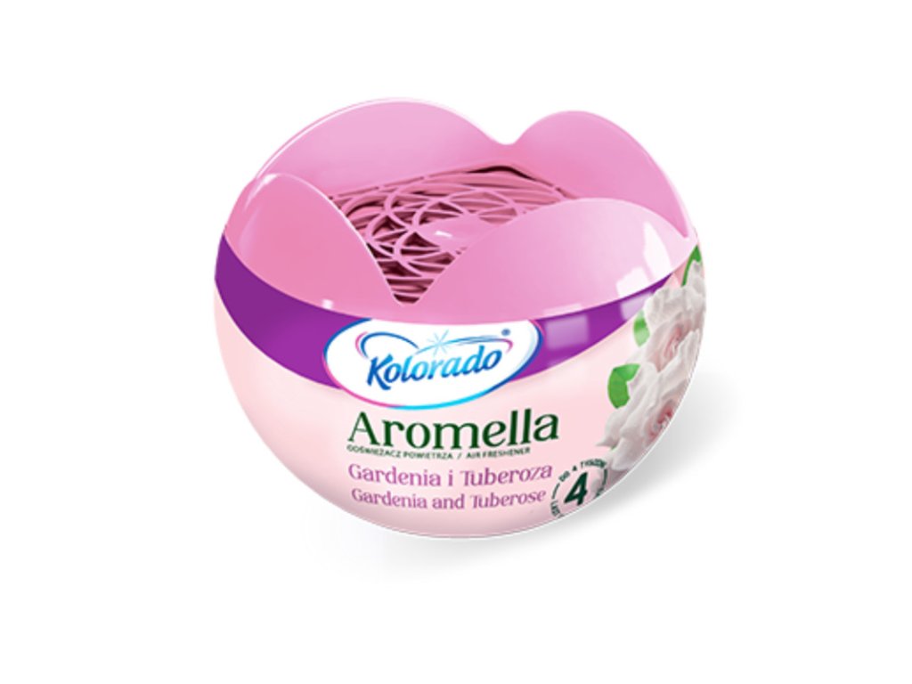 Osviežovač vzduchu Kolorado Aromella GARDÉNIA 150g • exkluzívne, jedinečné vône • osviežovač vzduchu v géli • dizajnový tvar • menšia odparovacia plocha vďaka elegantnej otváracej mriežke • vôňa až 4 týždne Hmotnosť: 150 gDodatočné parametre