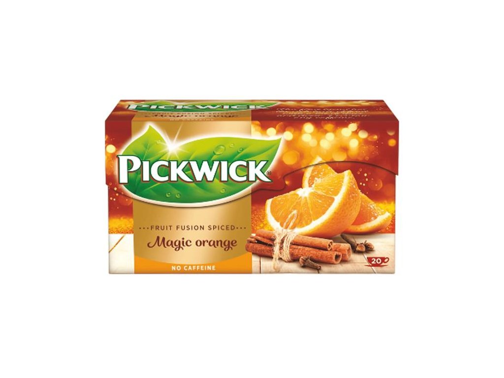 Zoznám sa s naším novým ovocným čajom s príchuťou pomaranča, škorice a klinčeka.Zloženie: jablčný výlisok, škorica (12 %), ibištek, čakanka, arómy, kyselina citrónová, sladké drievko, klinček (1 %) a pomarančová kôra (1 %)Balenie: 20x1,75 g Skladujte na suchom a tmavom mieste. Uvedené údaje sú len informatívne, presné informácie nájdete na etikete výrobku po jeho prevzatí.Značka: PICKWICK