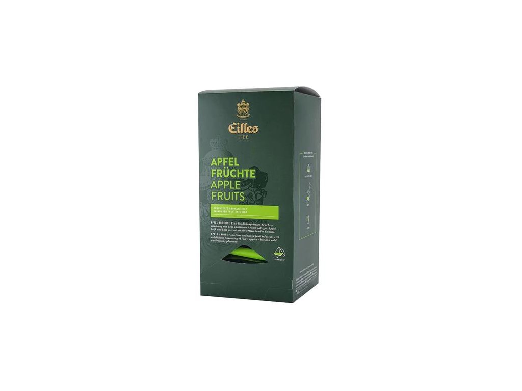 Ochutený ovocný čaj, zrelé jablká mu dodávajú ovocnú, sviežu chuť. Chutí skvele teplé alebo studené. Značka: EILLES Výrobca: J.J.Darboven GmbH Adresa: D-22113 Hamburg, Pinkertweg 13, Germany Web: www.darboven.com Email: info@darboven.comDodatočné parametre