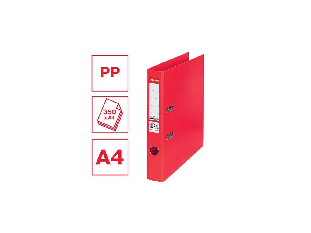 Pákový šanón, 50 mm, A4, polypropylén/polypropylén, s ochranným spodným kovaním, ESSELTE "Standard", Vivida červený