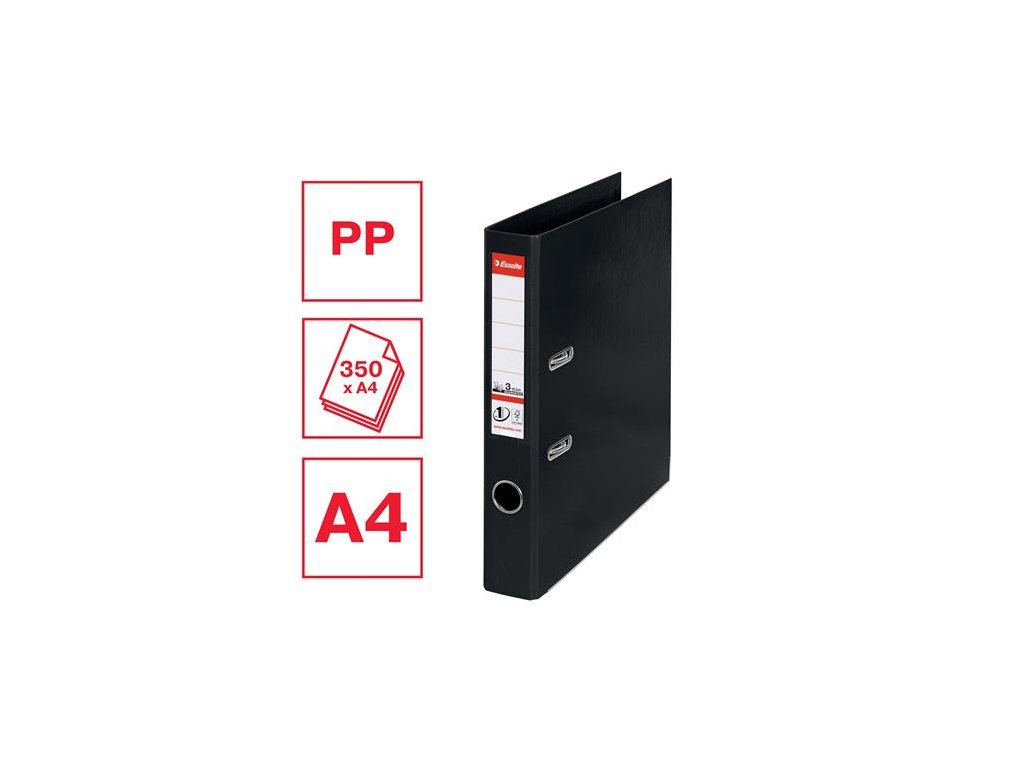 Pákový šanón, 50 mm, A4, polypropylén/polypropylén, s ochranným spodným kovaním, ESSELTE "Standard", Vivida čierny