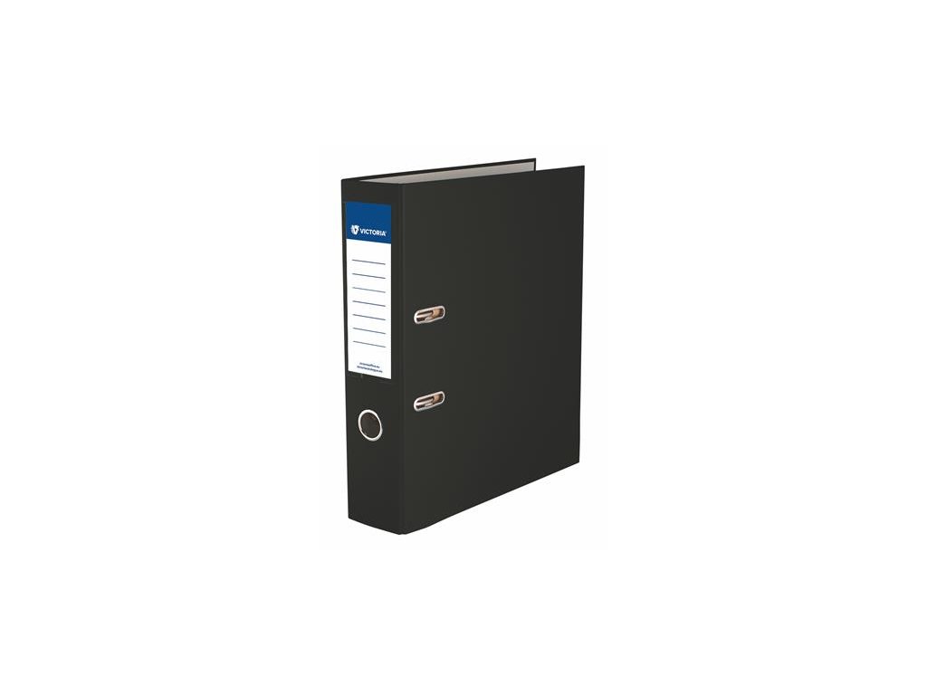 Pákový šanón, 75 mm, A4, polypropylén/kartón, s ochranným spodným kovaním, VICTORIA OFFICE "Basic", čierny