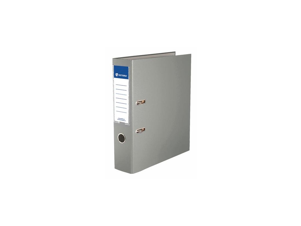Pákový šanón, 75 mm, A4, polypropylén/kartón, VICTORIA OFFICE, "Basic", sivý