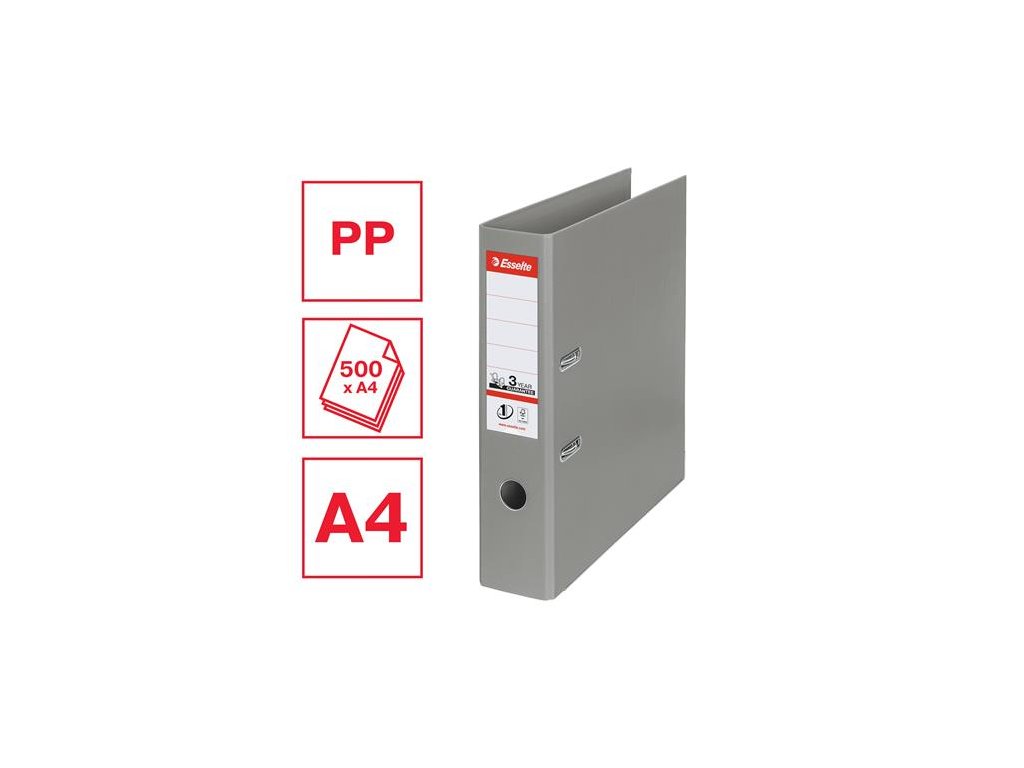 Pákový šanón, 75 mm, A4, polypropylén/polypropylén, s ochranným spodným kovaním, ESSELTE "Standard", sivý
