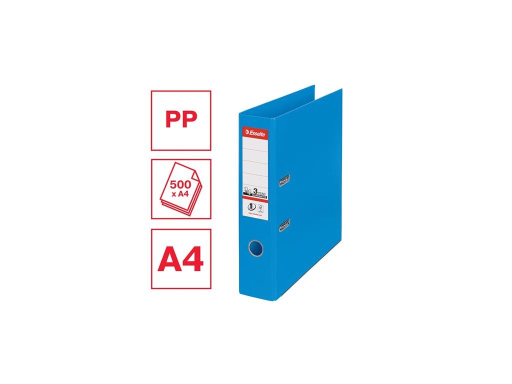 Pákový šanón, 75 mm, A4, polypropylén/polypropylén, s ochranným spodným kovaním, ESSELTE "Standard", Vivida modrý