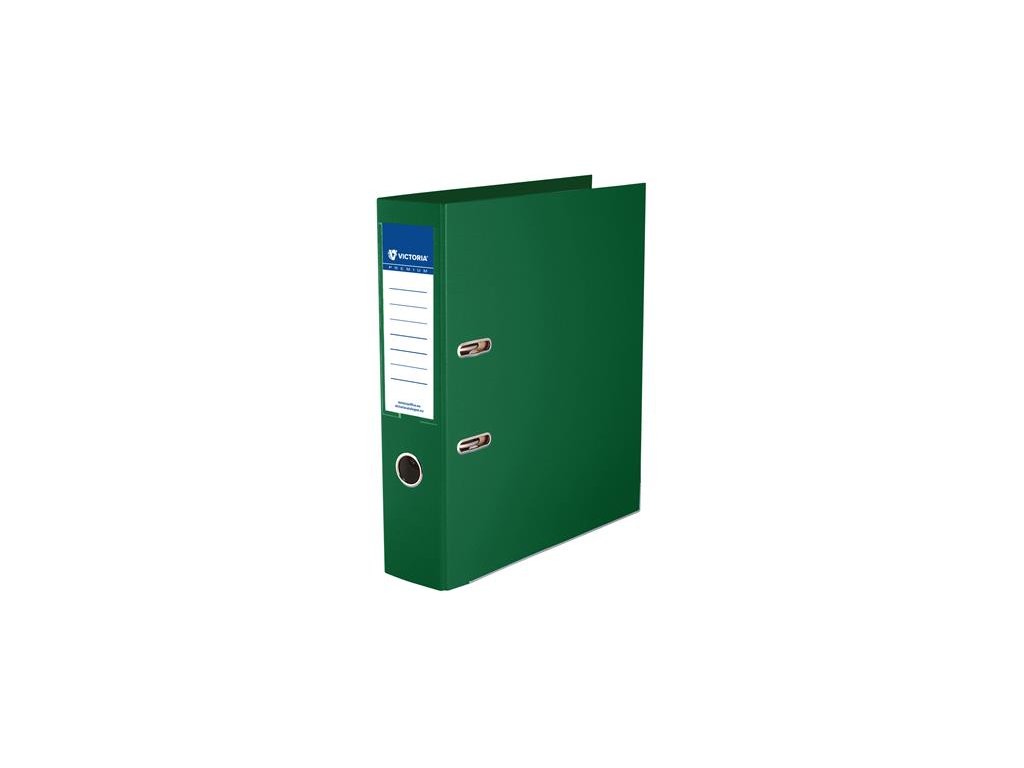 Pákový šanón, 75 mm, A4, polypropylén/polypropylén, s ochranným spodným kovaním, VICTORIA OFFICE „Premium“, zelený