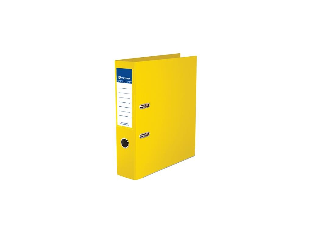 Pákový šanón, 75 mm, A4, polypropylén/polypropylén, s ochranným spodným kovaním, VICTORIA OFFICE „Premium“, žltý