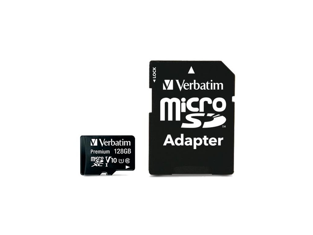 Pamäťová karta, microSDXC, 128GB, CL10/U1, 90/10 MB/s, s adaptérom, VERBATIM "Premium"