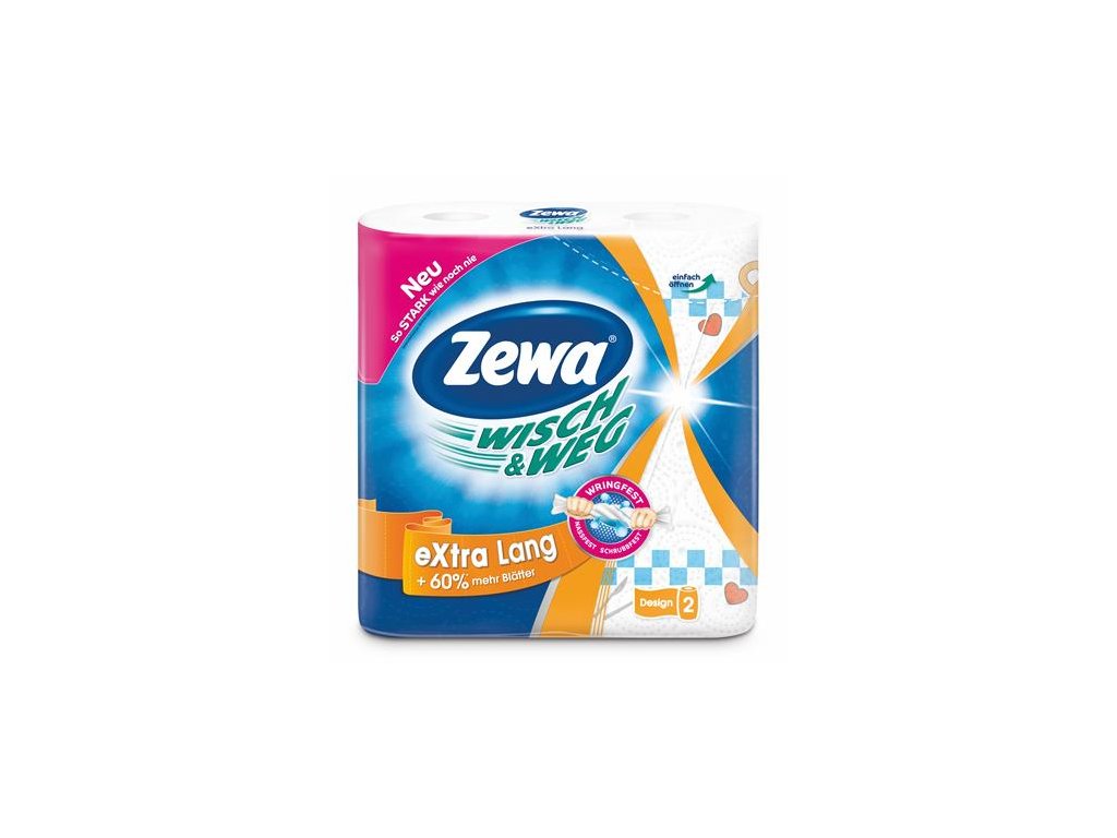 Papierové utierky, 2-vrstvové, 2 kotúče/bal, ZEWA "Wisch&Weg extra lang"
