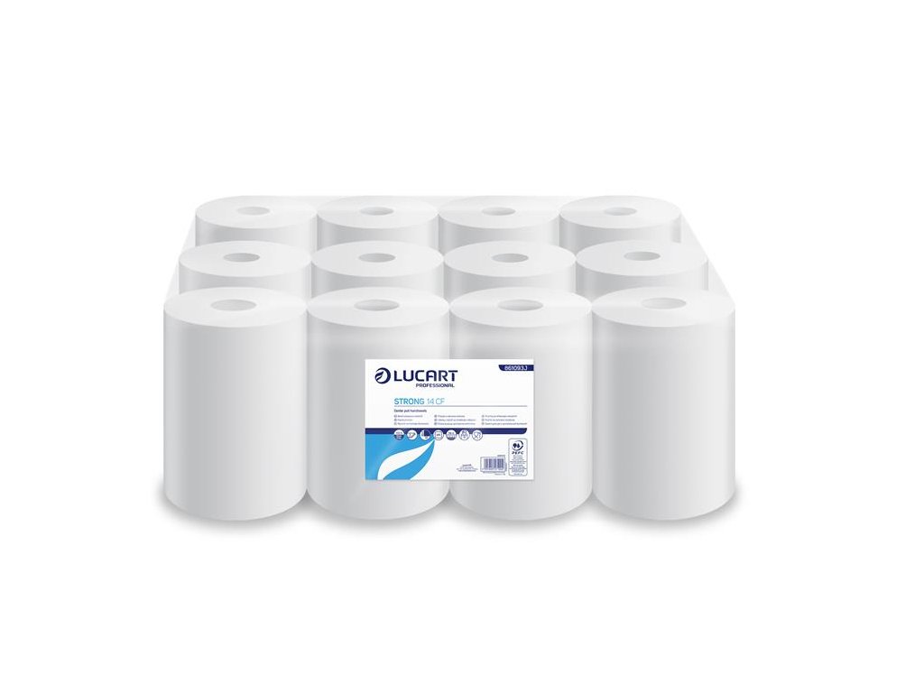 Papierové utierky, kotúčové, vnútorné dávkovanie, 2-vrstvové, LUCART, "Strong 14 CF", snehobiela