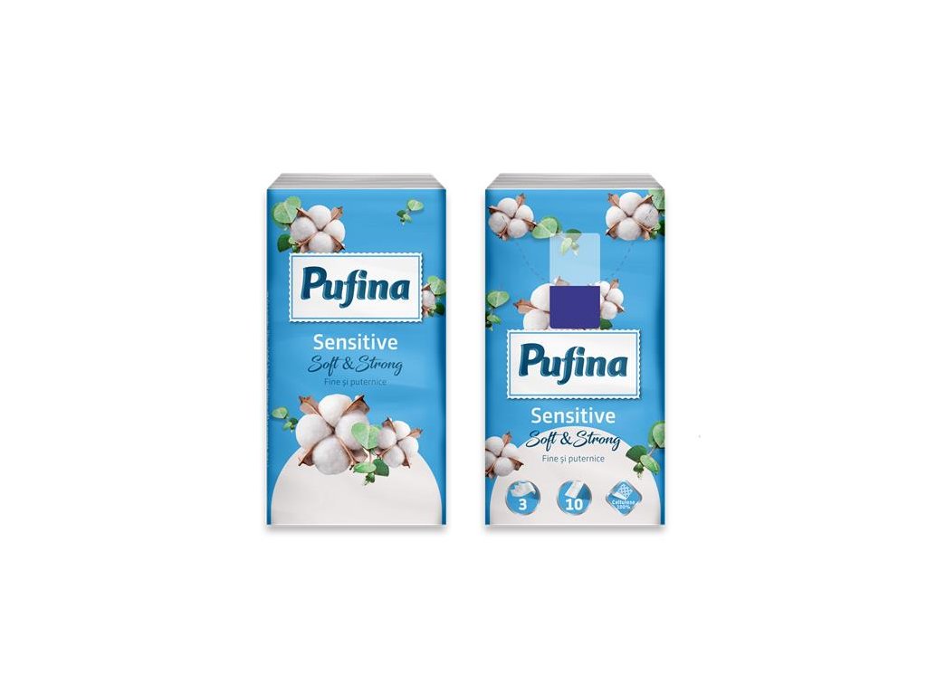 Papierové vreckovky, 3-vrstvové, 10×10 ks, PUFINA "Sensitive"