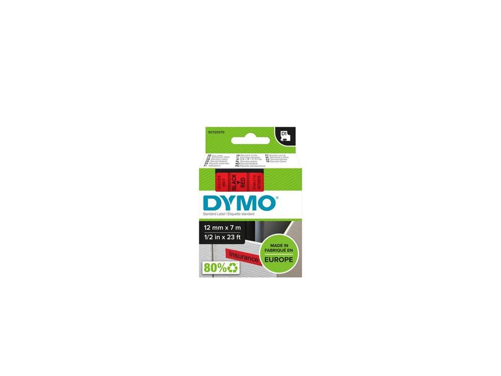 Páska do štítkovača, 12 mm x 7 m, DYMO "D1", červená-čierna