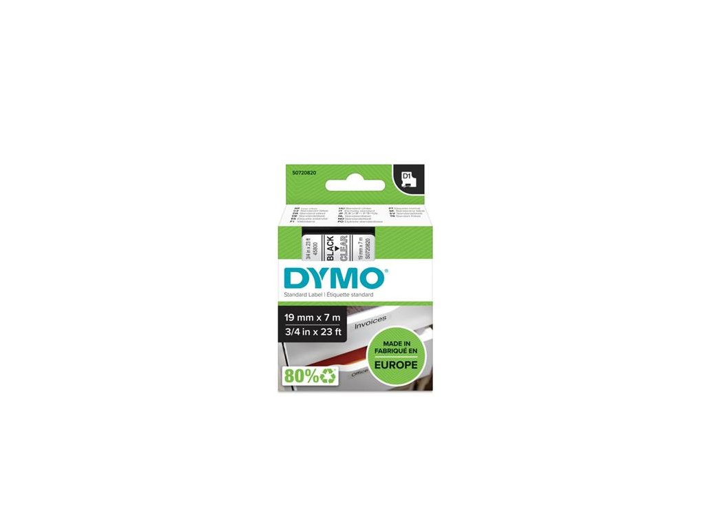 Páska do štítkovača, 19 mm x 7 m, DYMO "D1", číra-čierna