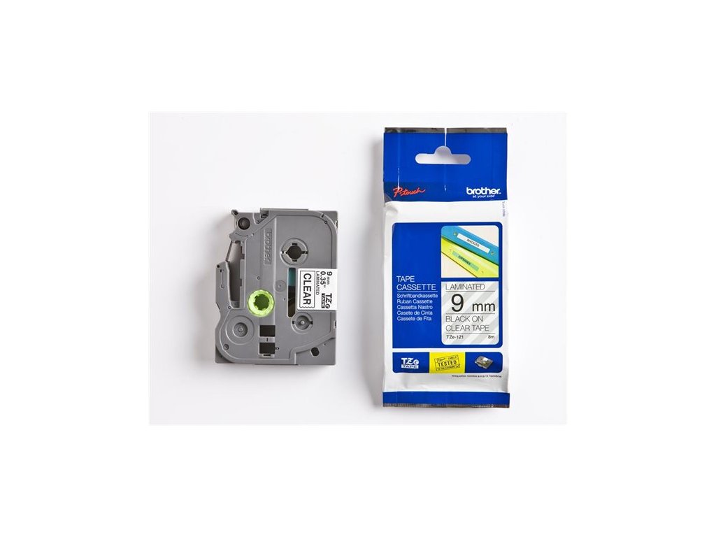 Páska do štítkovača, 9 mm x 8 m, BROTHER, "TZe-121" priehľadná-čierna