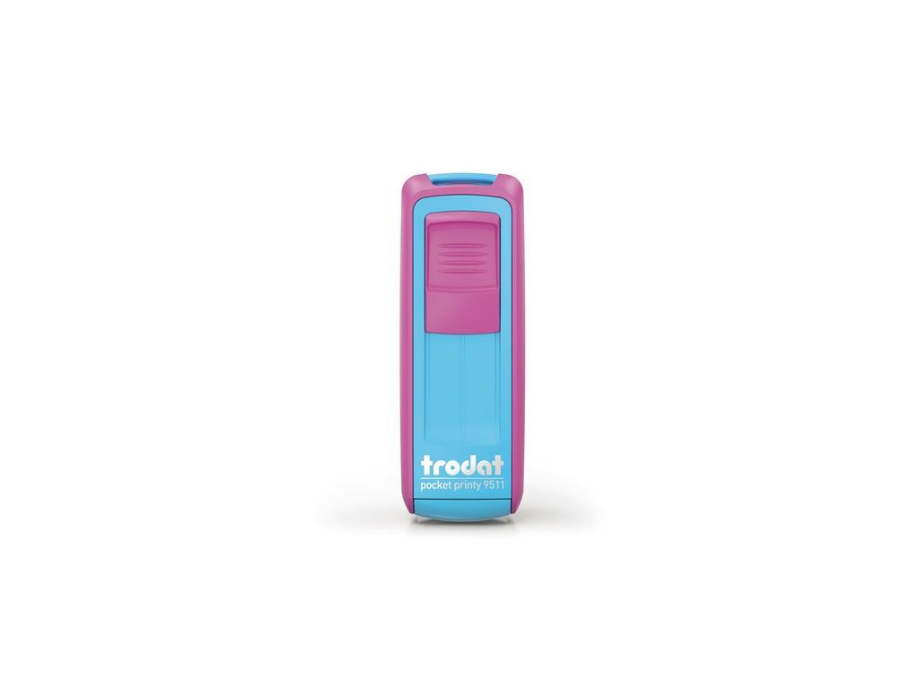 Pečiatka, TRODAT "Pocket Printy 9511", ružový-tyrkysový kryt, s čiernou poduškou