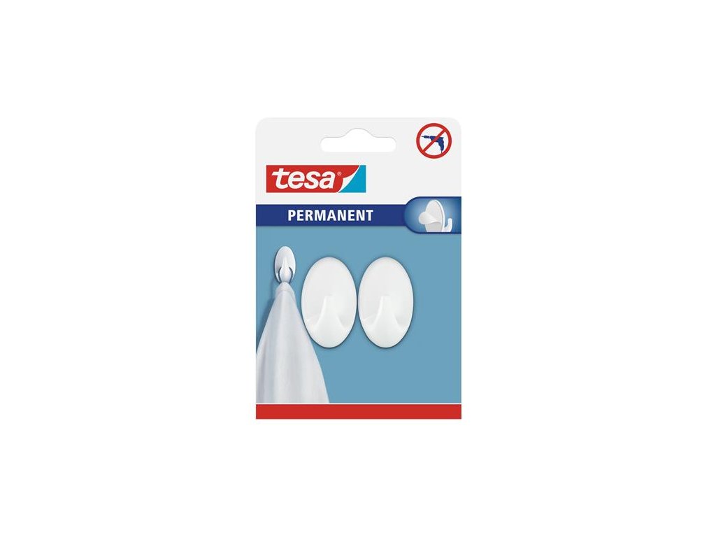 Permanentné plastové háčiky, samolepiace, oválne, veľkosť: S, TESA, biela