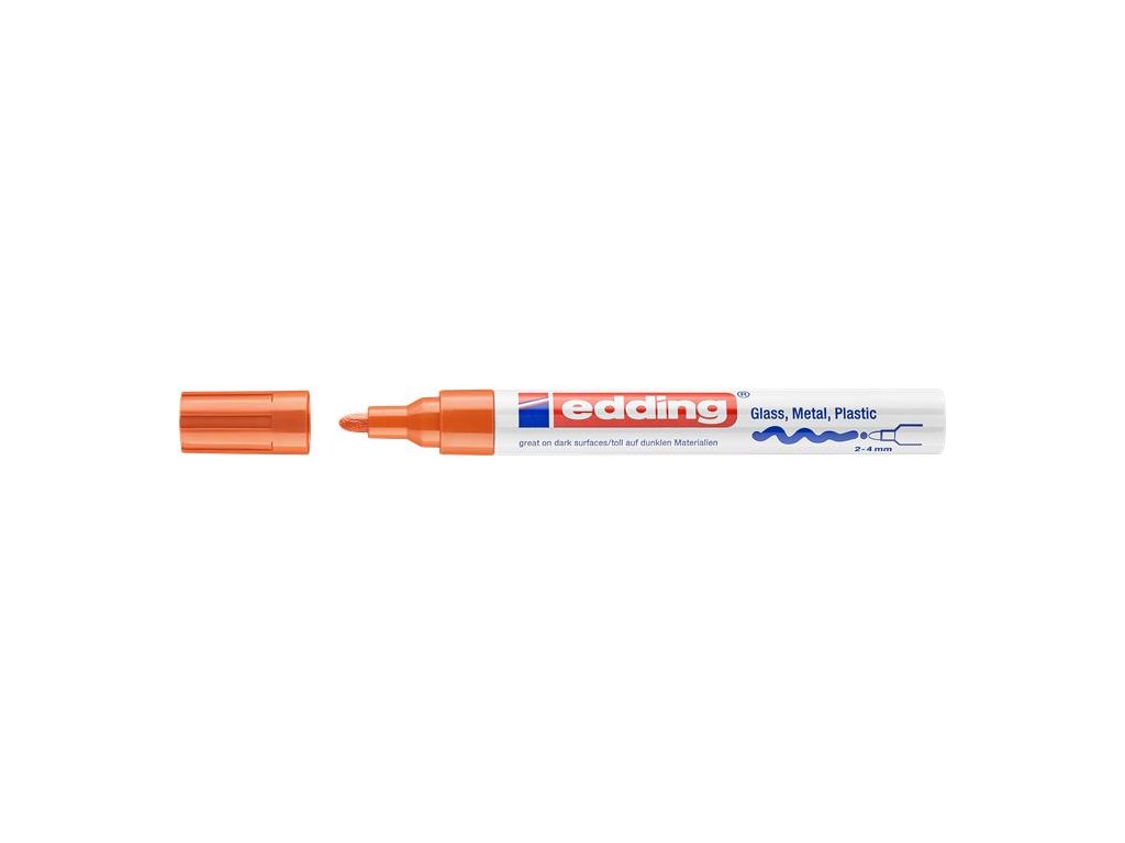 vhodný takmer na všetky povrchy (sklo, kov, porcelán, plast) kuželový hrot kovové telo vode a svetlu odolný, nezotierateľný rýchloschnúci atrament vhodné aj na zašpinené povrchy rovnomerné dávkovanie atramentu farba uzáveru sa zhoduje s farbou náplne hrúbka písma: 2–4 mm Značka: EDDING Výrobca: EDDING INTERNATIONAL GMBH Adresa: Bookkoppel 7, 22926 Ahrensburg, Germany Web: www.edding.com Email: info@edding.comDodatočné parametre