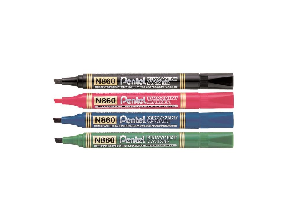 Permanentný popisovač, 0,6-4,5 mm, zrezaný hrot, PENTEL "N860", modrá