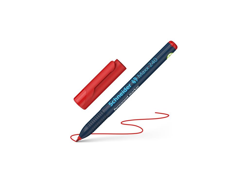 Permanentný popisovač, 1- 2 mm, kužeľový hrot, SCHNEIDER "240", červený