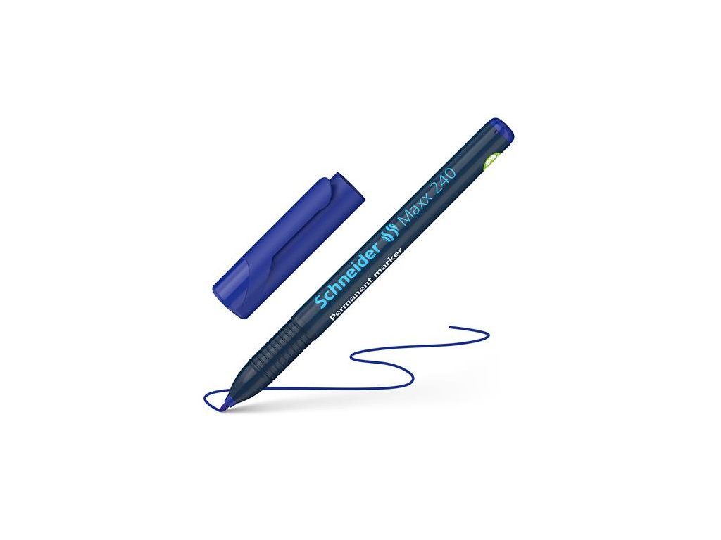Permanentný popisovač, 1- 2 mm, kužeľový hrot, SCHNEIDER "240", modrý