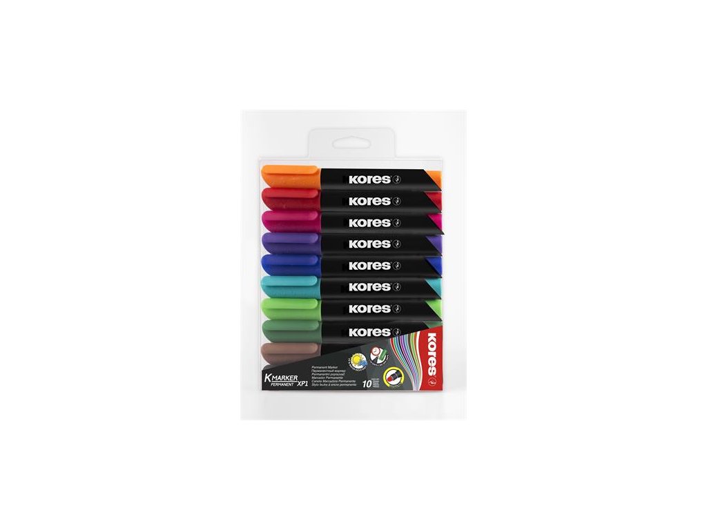 Permanentný popisovač, 3 mm, kužeľový hrot, KORES "K-Marker XP1", 10 rôznych farieb