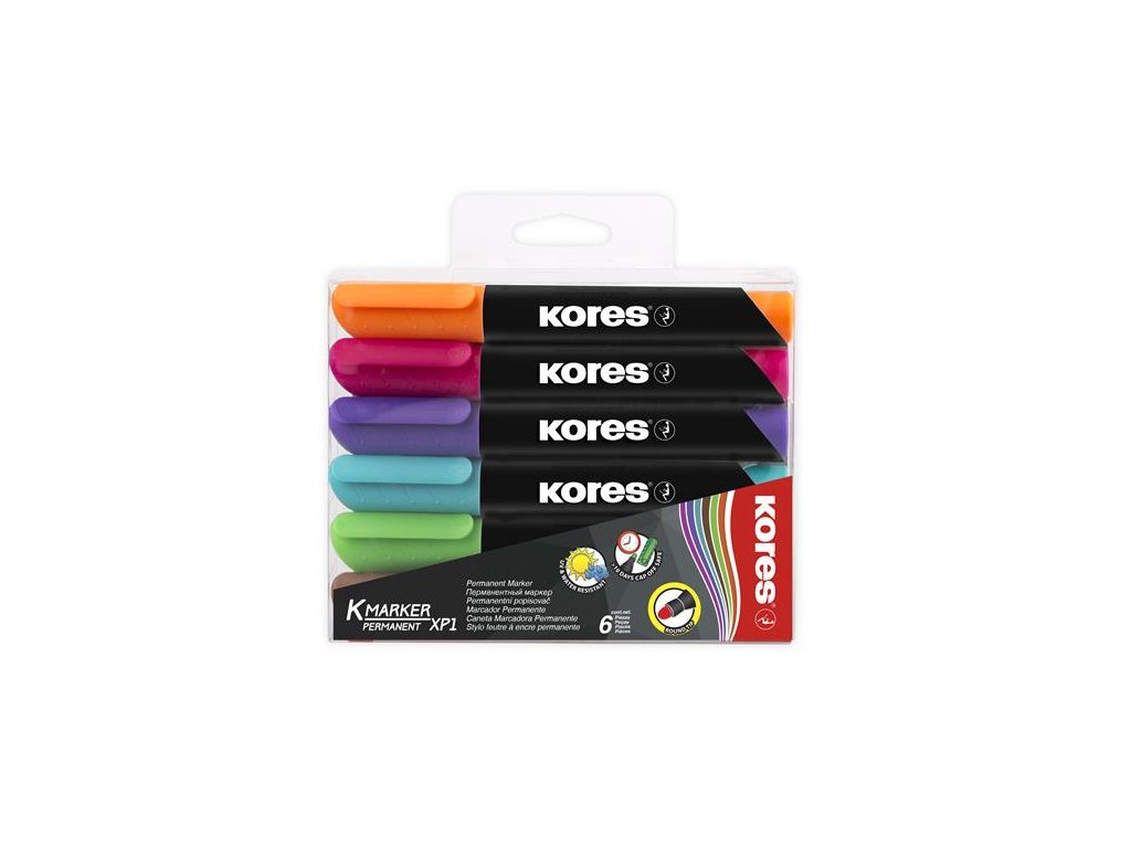 Permanentný popisovač, 3 mm, kužeľový hrot, KORES "K-Marker XP1", 6 rôznych farieb