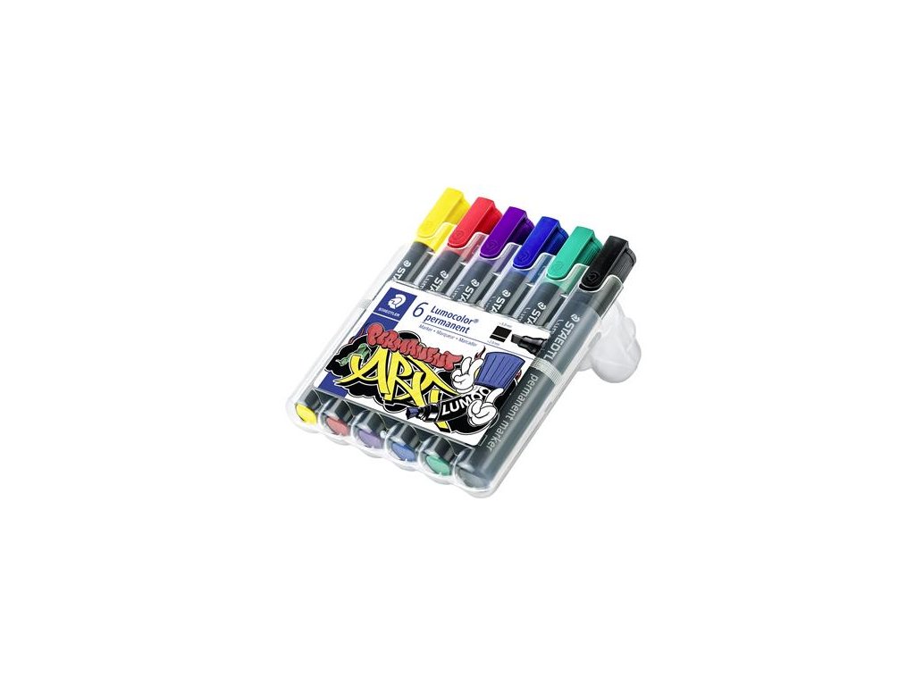 Permanentný popisovač, sada, 2-5 mm, STAEDTLER "Lumocolor 350", 6 rôznych farieb
