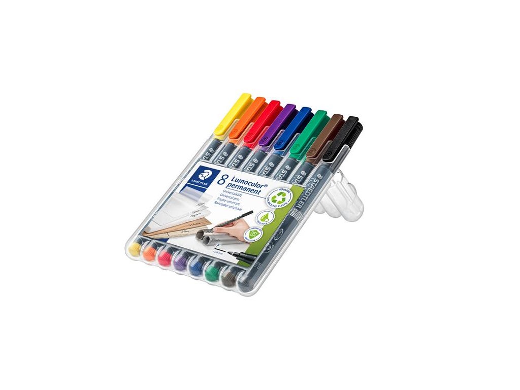 Permanentný popisovač, sada, OHP, 0,6 mm, STAEDTLER "Lumocolor 318 F", 8 rôznych farieb