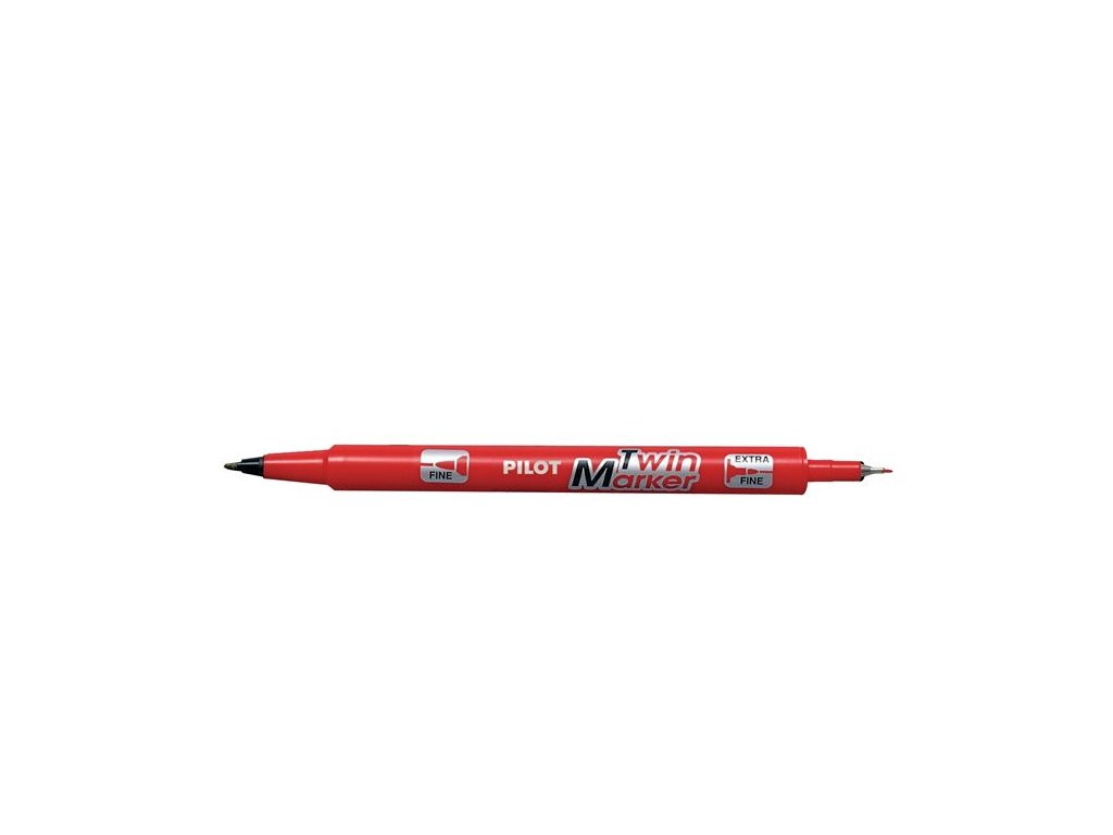 Permanentný popisovač, 0,8/2 mm, obojstranný, PILOT "Twin", červený