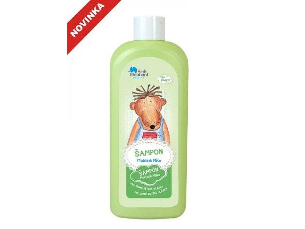 Pink Elephant Šampón „Medvedík Miško“ 500ml Pre deti staršie ako 3 roky Medvedík Miško má veľmi rád, keď mu mama umýva vlasy – šampón pri kontakte nedráždi oči. Po večernom kúpeli sa mu v noci vždy prisnije nejaká rozprávka. Raz sa mu snívalo, že má čarovný hrebeň, ktorý češe vlasy sám. Po použití šampónu má vlasy jemné, poddajné a ľahko sa mu rozčesávajú. Vyskúšaj ho aj ty! Šampón šetrne umýva detské vlásky. Nedráždi oči. Aktívne zložky detské vlásky starostlivo ošetrujú. Extrakt z bambusu vlasy posilňuje a zvlhčuje. Vďaka pšeničným proteínom sa vlasy ľahko rozčesávajú. Pantenol im dodáva lesk. Šampón nezaťažuje jemné vlasy dieťaťa.Dodatočné parametre